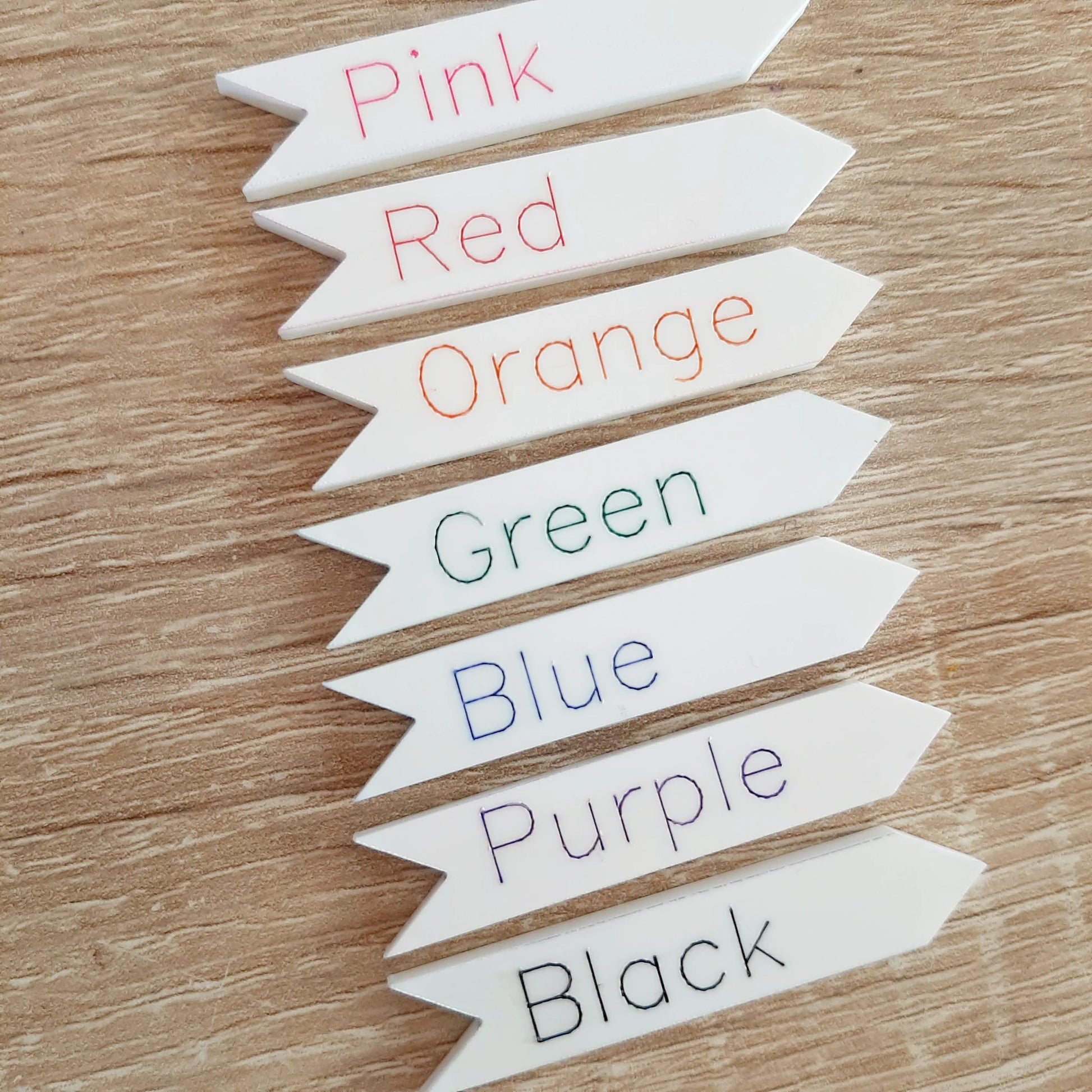 Our markers measure 5cm wide x 1cm tall.